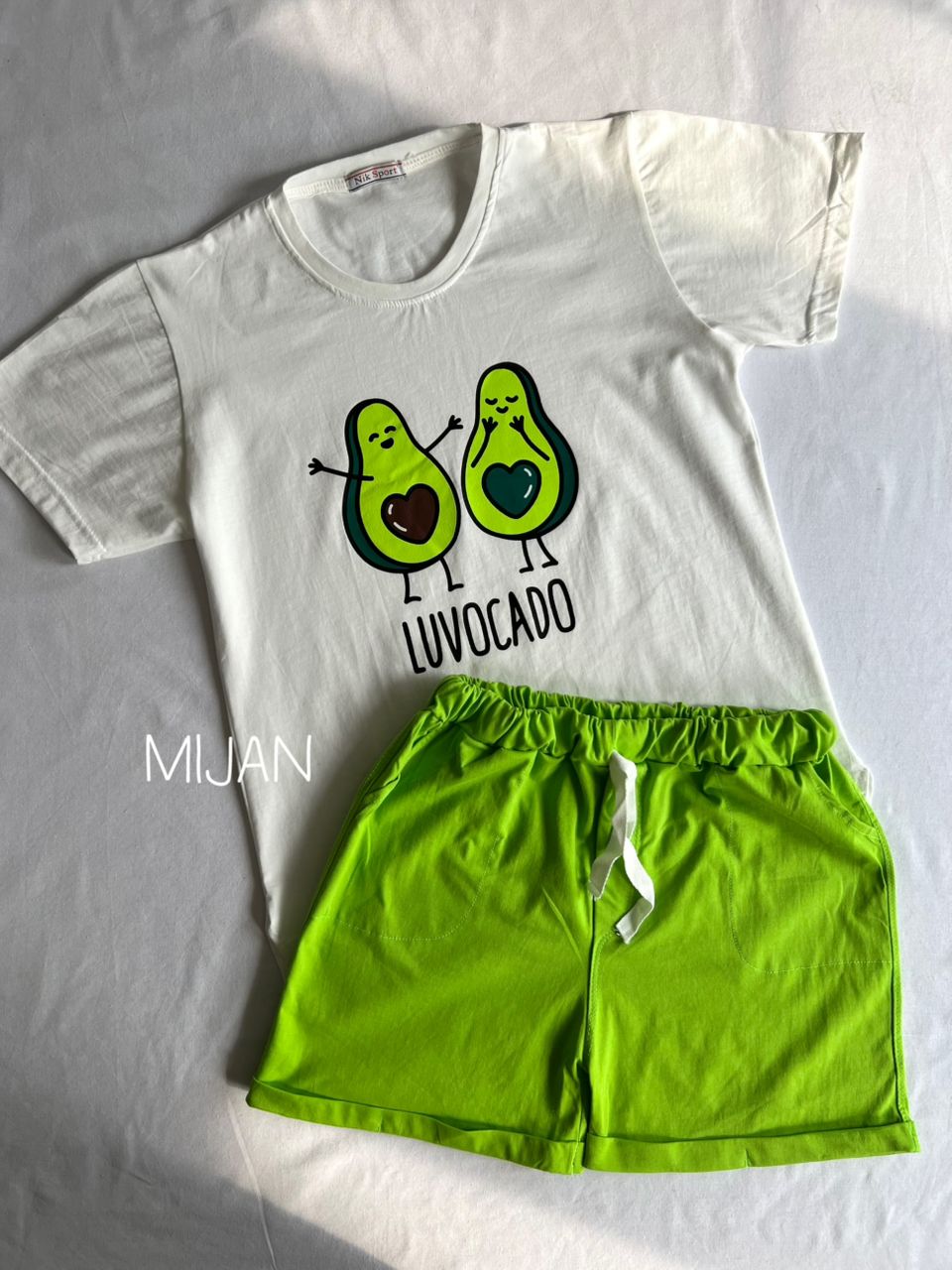 ست تیشرت شلوارک پنبه طرح آووکادو فری سایز