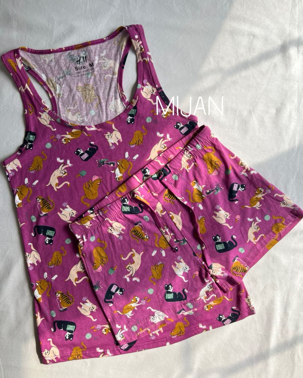ست تاپ و شورتک H&M طرح گربه نخ پنبه سایز مدیوم
