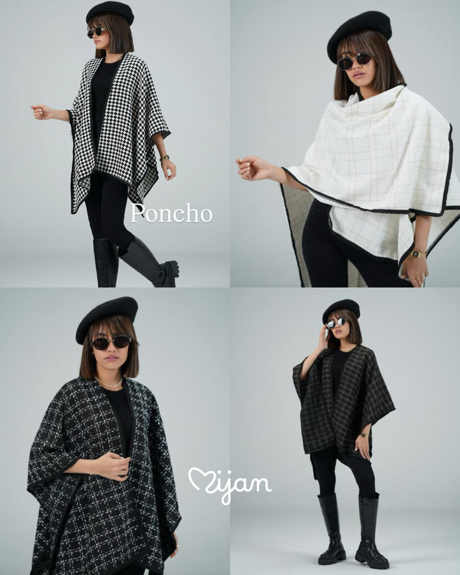 مناسب ترین پانچو بازار با پارچه شنل باکیفیت. جنس: شنل باکیفیت. ترند و به روز. مناسب از سایز ۳۶ به بالا در طرح ها و رنگ های متنوع. عرض (از سمت راست تا چپ پارچه) ۱۰۶، قد پشت ۷۵، قد جلو ۷۵.