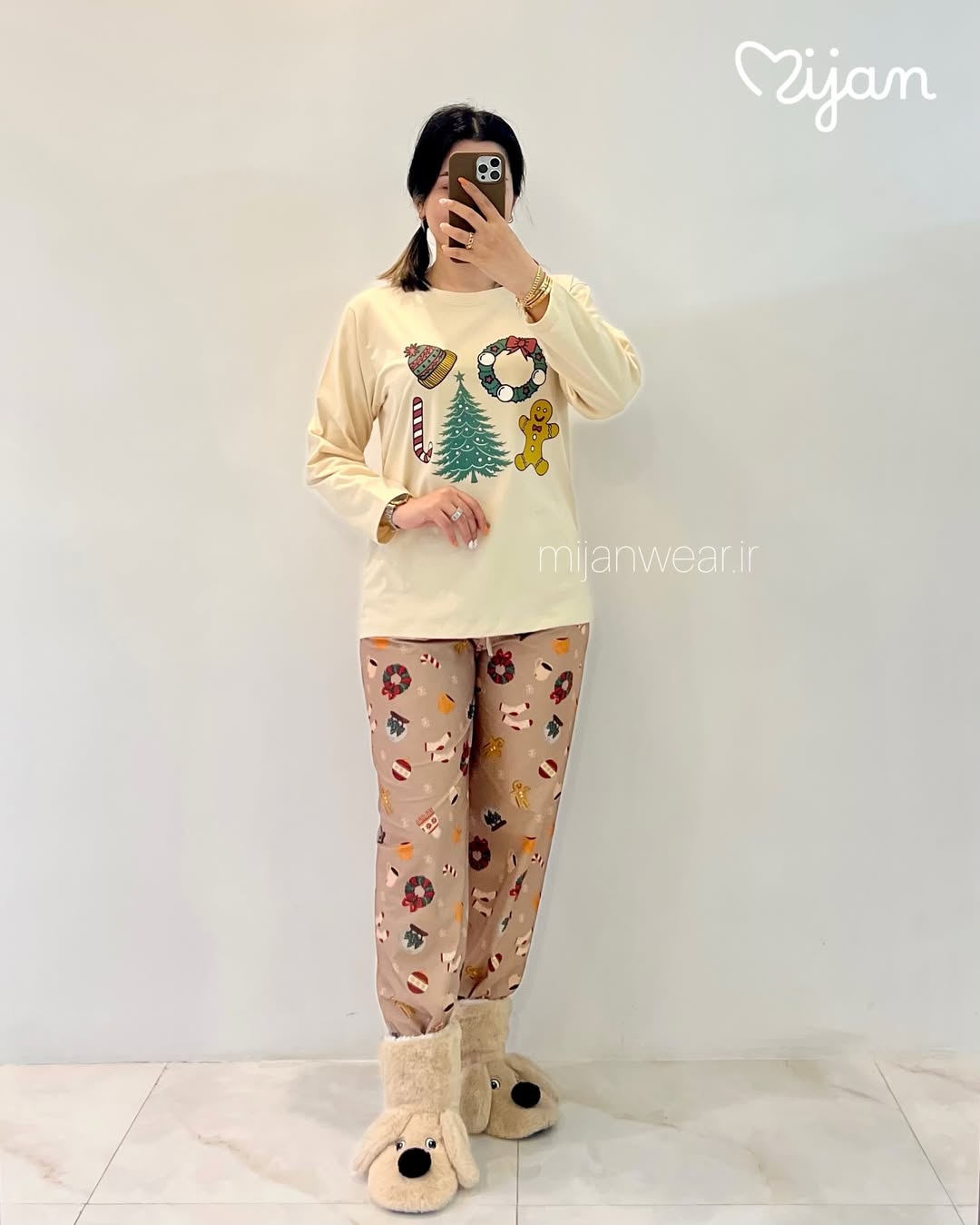 ست بلوز و شلوار راحتی زنانه کریسمسی فری سایز