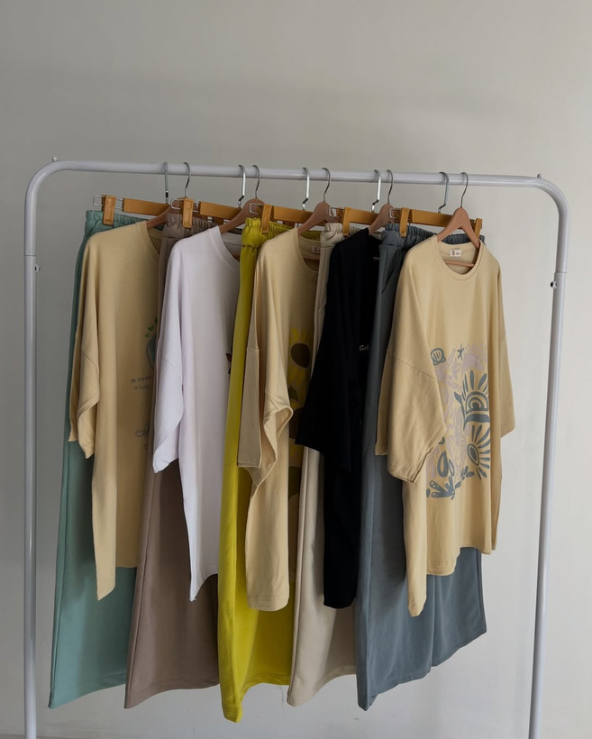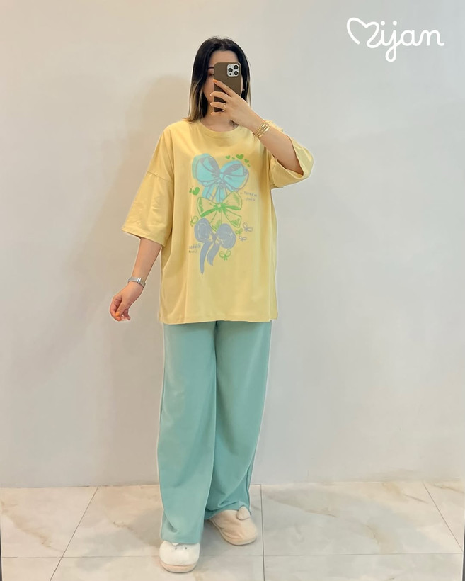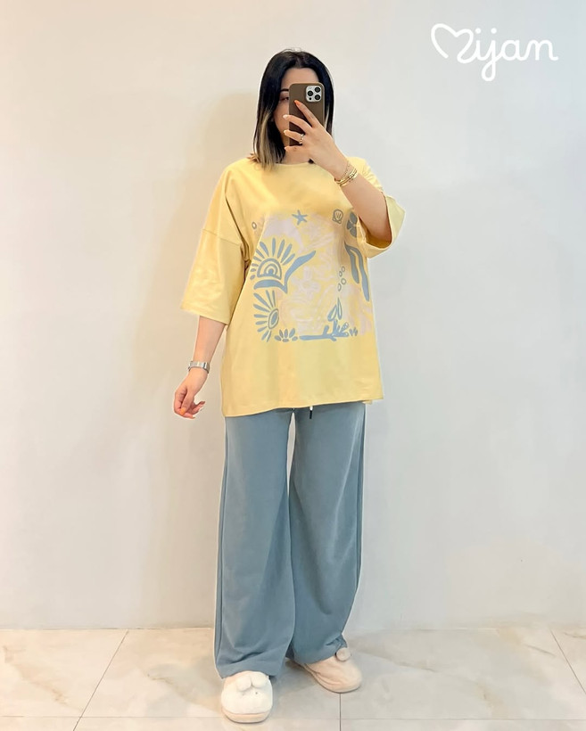 ست لانگ و شلوار بگ جنس تیشرت پنبه سوپر جنس شلوار گلکسی اعلاء قد تیشرت ۷۴ سانتیمتر و قد شلوار ۱۰۰ سانتیمتر. فری سایز ۳۶تا۴۶ بسیار باکیفیت و شیک و راحت. مناسب مهمونی و طبیعت و خونه